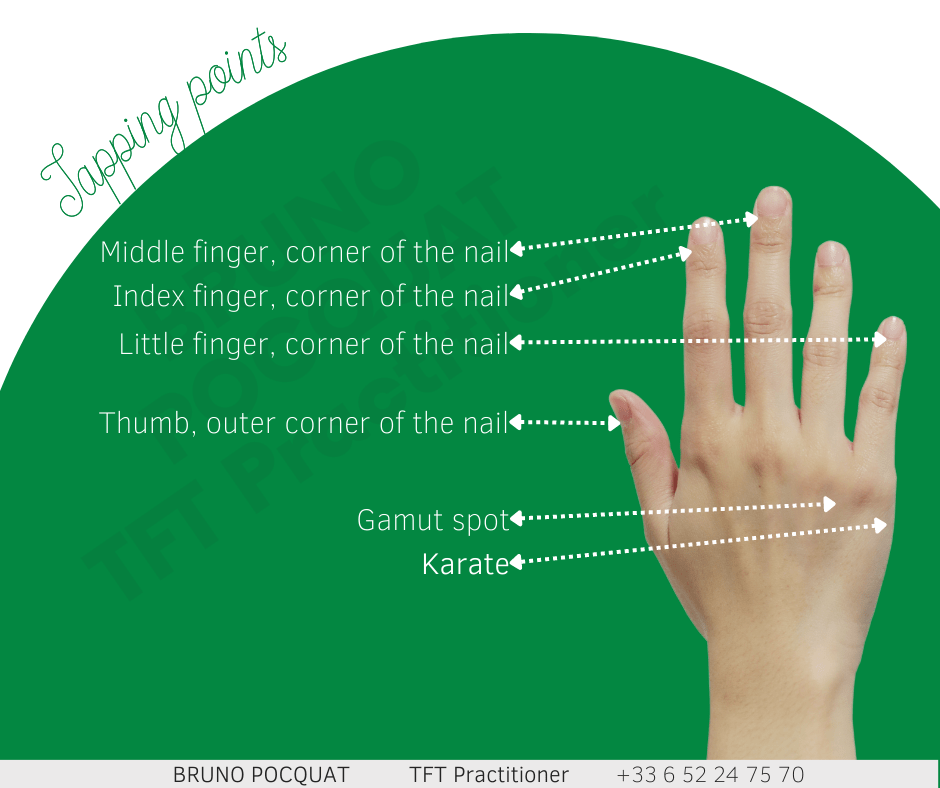 Thought Field Therapy (TFT) uses acupuncture points to help restore balance to the body’s energies. Acupuncture points are specific points on the body that are known to affect the body’s energies and energy flow. To help you tap in the right place, here is a description of all the points: